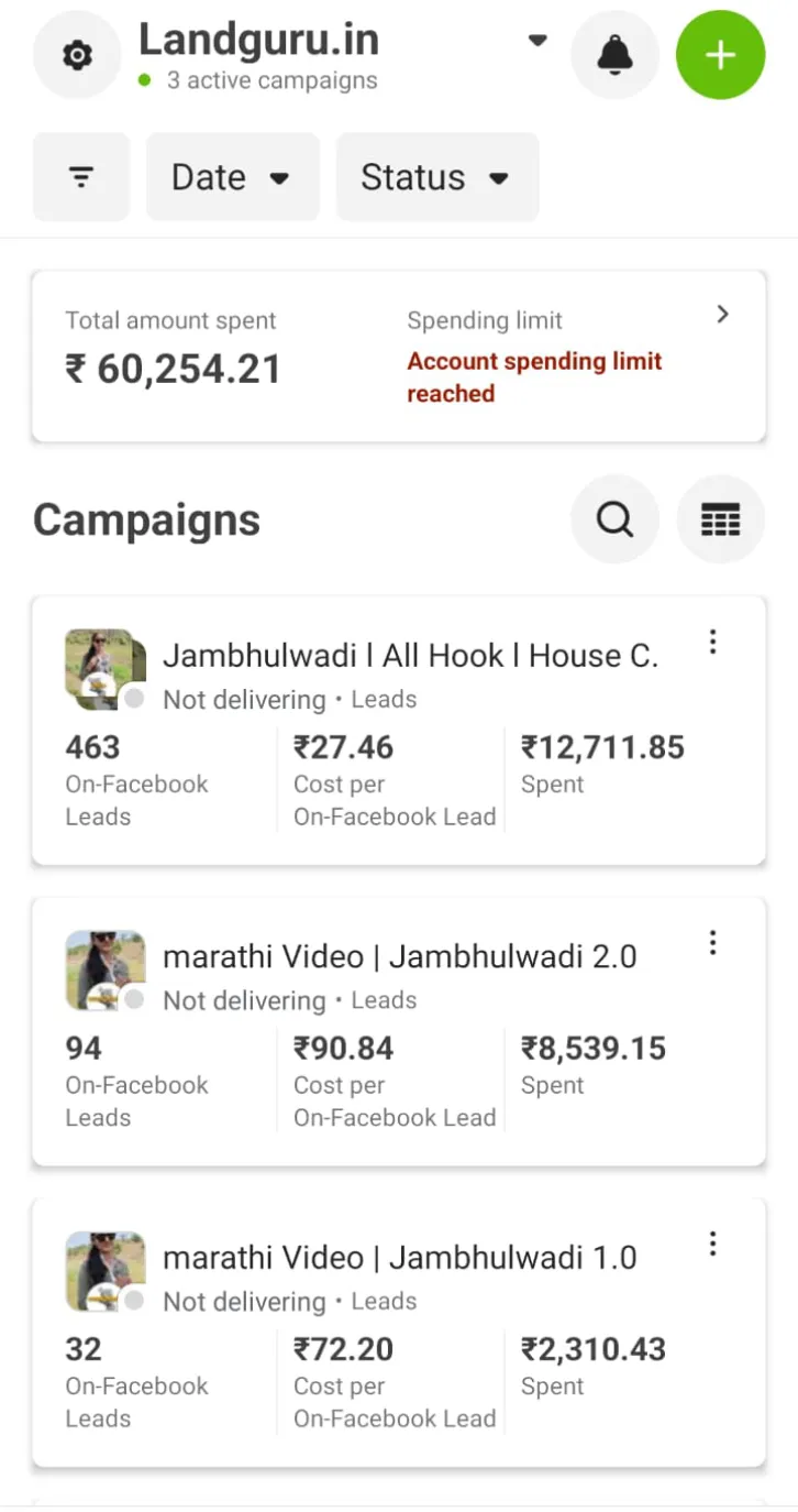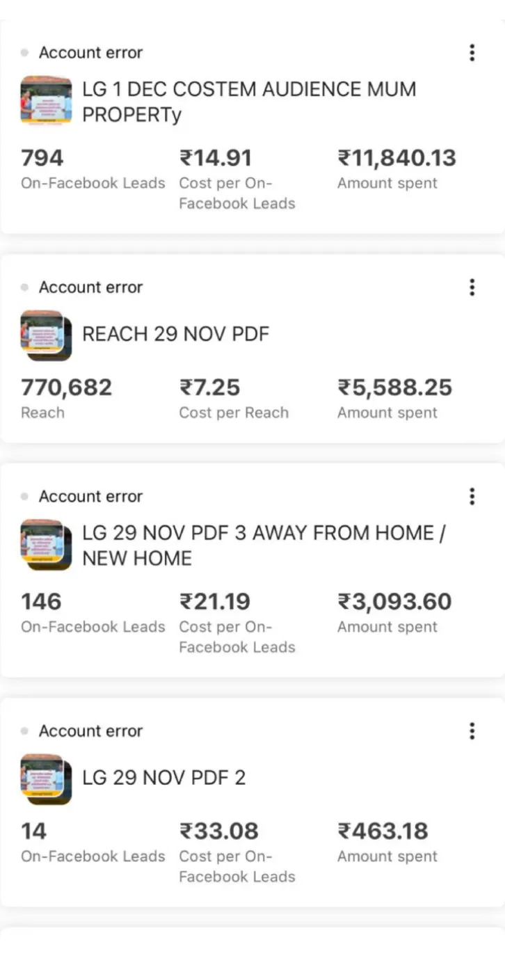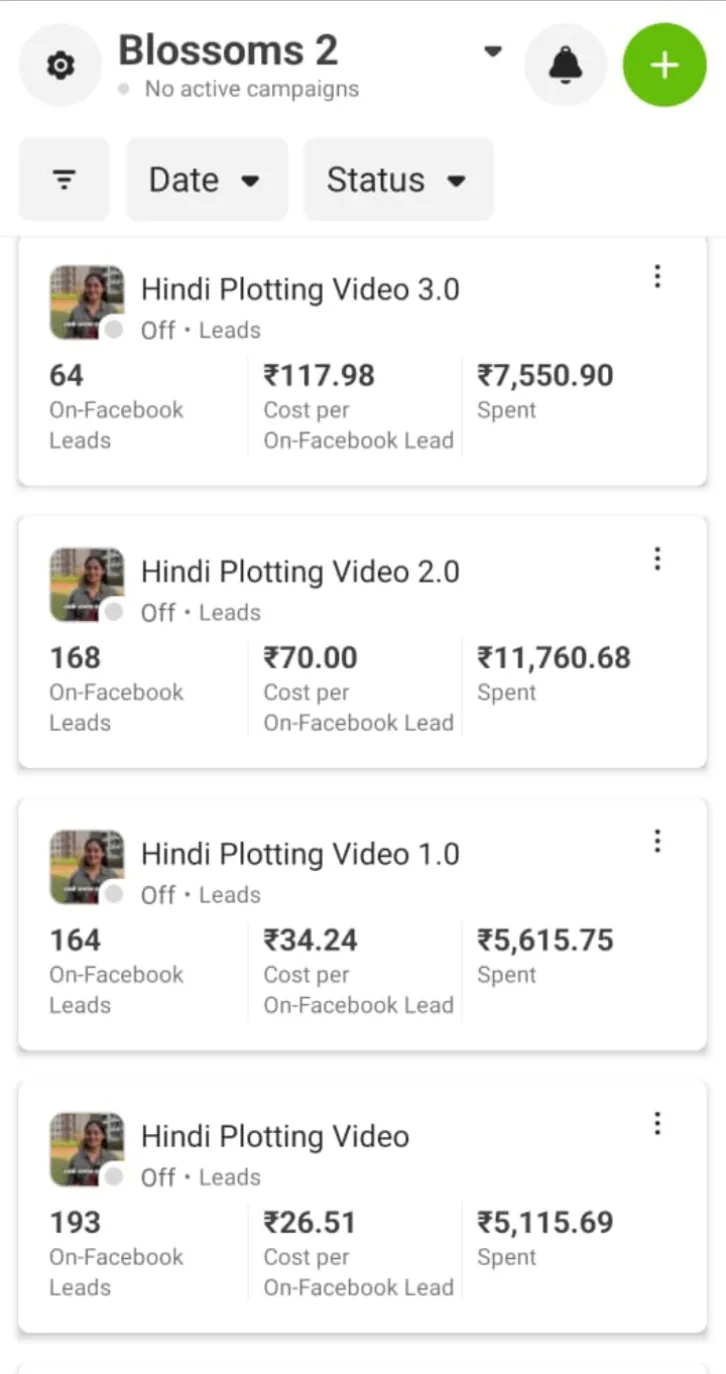 • Campaign 2: 206 leads at ₹61.71/lead.